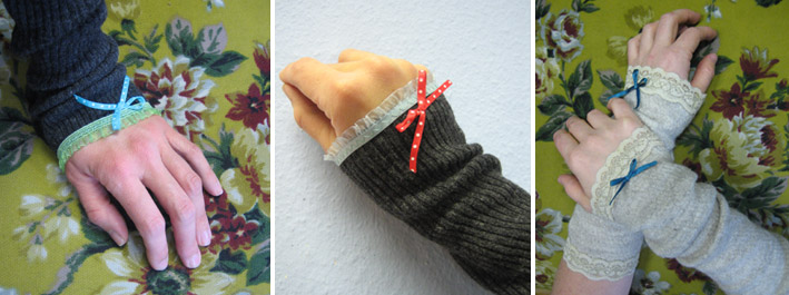 Armstulpen aus dehnbaren Wollstoffen mit elastischer Spitze.